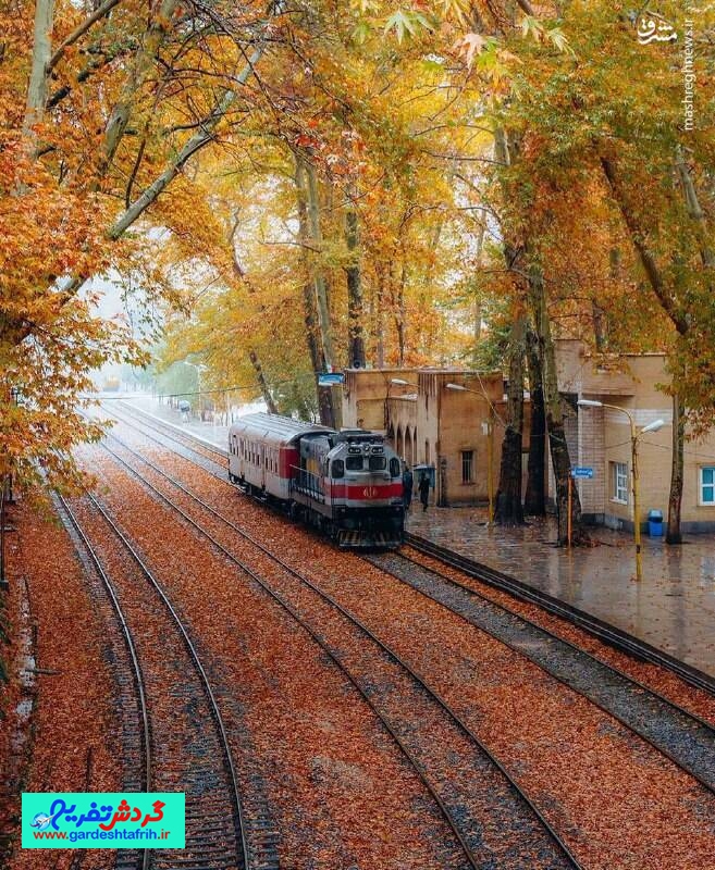 پاییز هزار رنگ در ایستگاه راه آهن بیشه