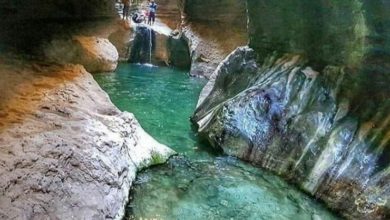 حیرتانگیزترین تنگه ایران در پارسیان | شوتاریکو ؛ بهشتی پر از گودالهای سبز و فیروزهای/تصاویر